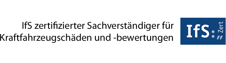 Als personenzertifizierter Kfz-Sachverständiger nach DIN EN ISO/IEC 17024 wurde meine fachliche Kompetenz durch das Institut für Sachverständigenwesen e. V. (IfS) unabhängig geprüft und bestätigt.